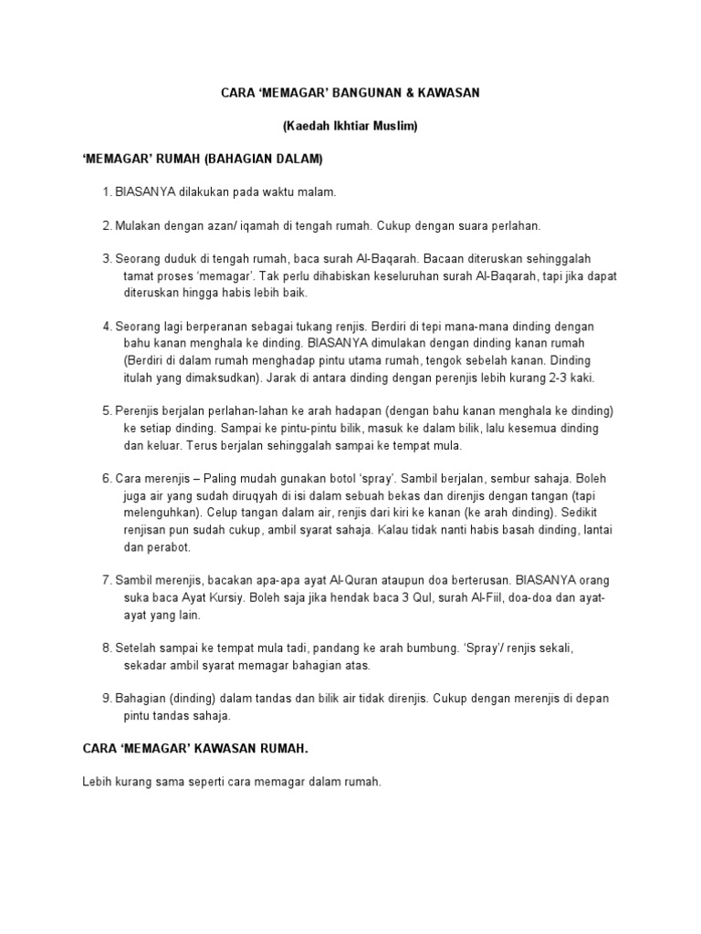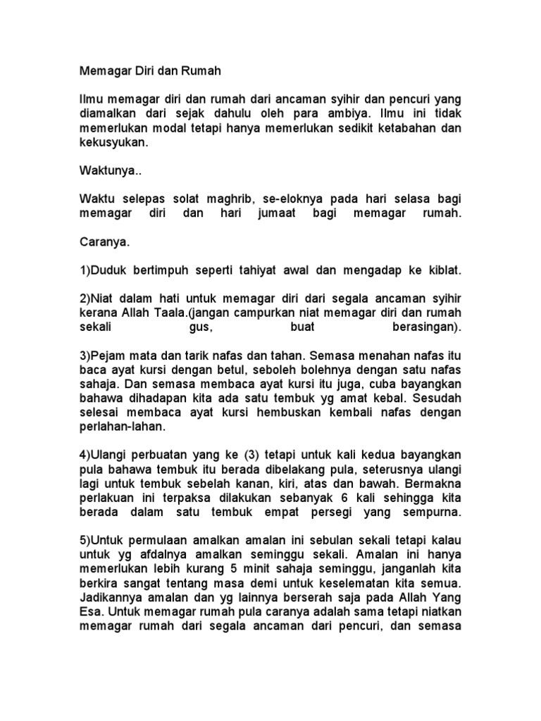 Pemasangan pagar gaib bisa dilakukan sendiri dengan melakukan berbagai macam doa secara islam. Doa ampuh pagar rumah dan usaha diri keluarga dari pencuri ganguan jin setan sihir amp santet. Doa dan amalan mengelakkan rumah yang ditinggalkan dari dimasuki atau dicerobohi oleh si pencuri/perompak atau yang sama waktu dengan jin/syaitan/iblis. Rumah yang telah dipagar gaib sudah tentu akan lebih aman dan terhindar dari segala bentuk. Melihat manfaat pagar gaib maka banyak yang mencari amalan doa membuat pagar baik untuk memagari diri, rumah dan.